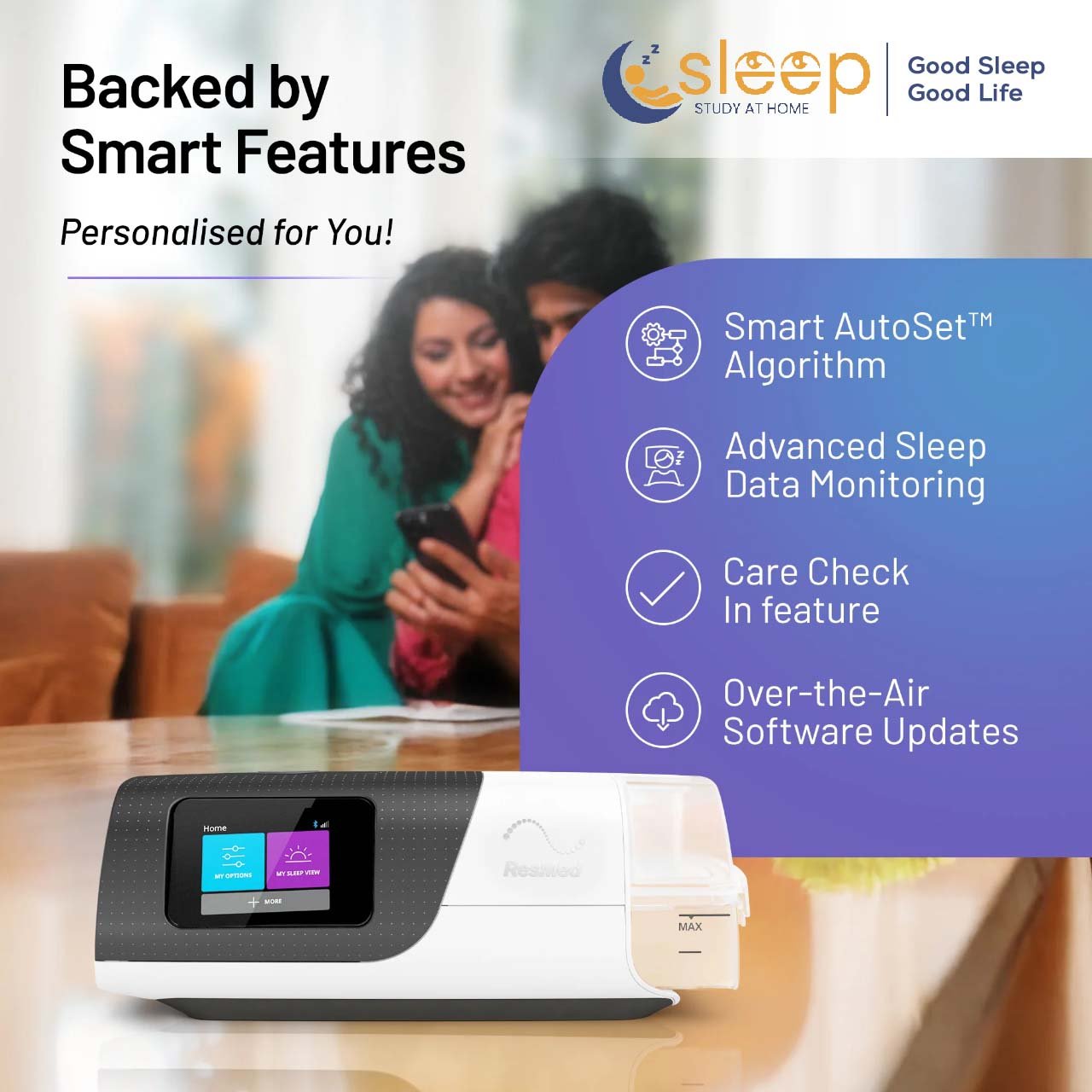 The AirSense 11 AutoSet 4G Tripack is a next-generation automatic CPAP device from ResMed tailored for people with obstructive sleep apnea (OSA). It intelligently delivers air pressure that continuously adapts to your breathing patterns throughout the night, offering personalized and effective therapy for deeper, more comfortable sleep.